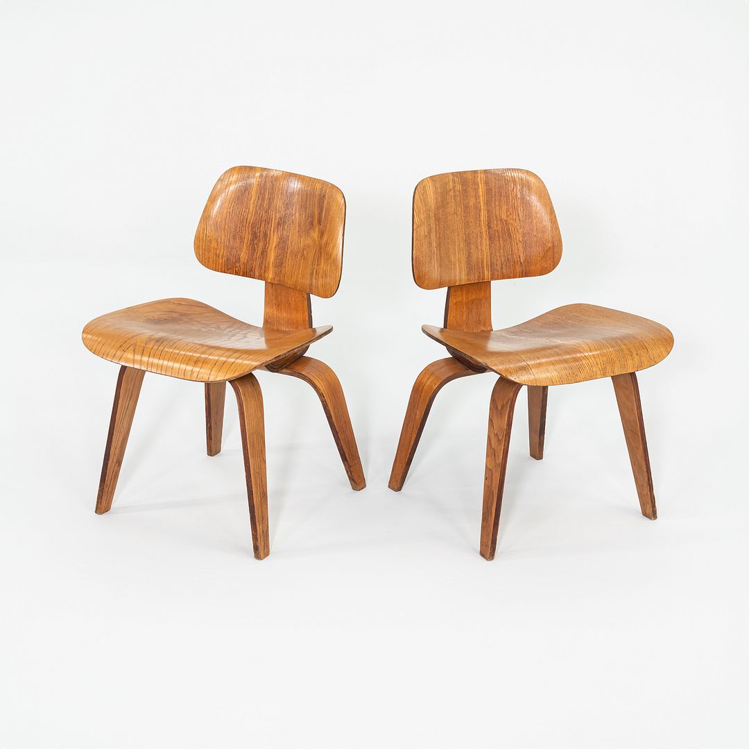 1946 Pair of Eames Evans DCW Dining Chairs in Calico Ash Wood