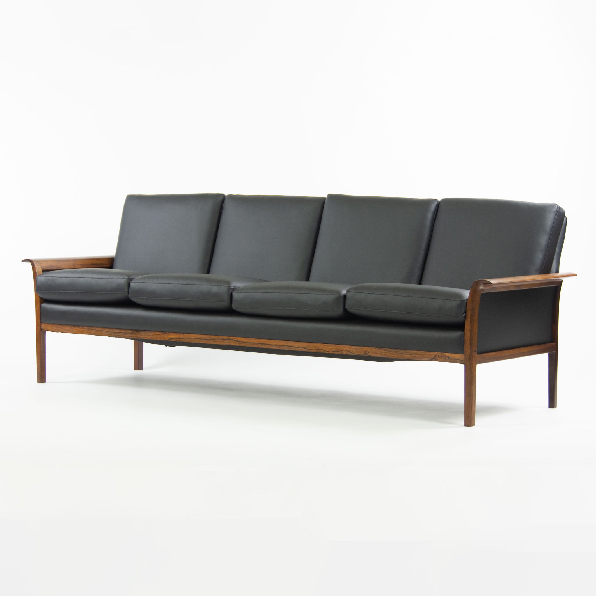 1960's Knut Saeter Rosewood Sofa for Vatne Mobler Norway New Black Upholstery