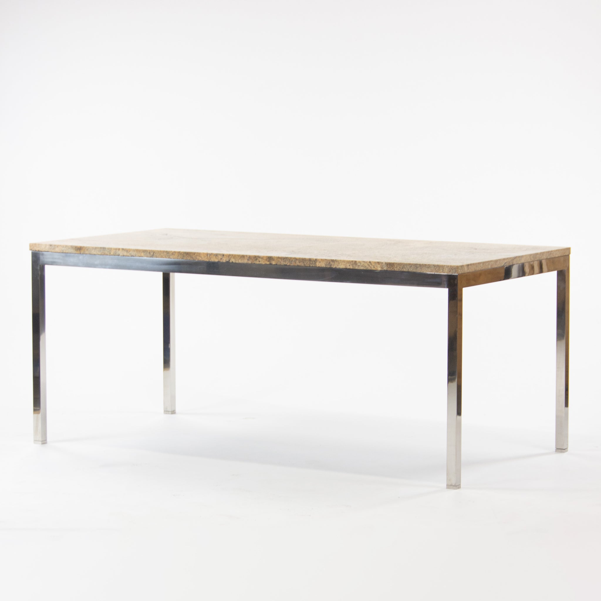 List price on this piece is $8-10k This example is made from a stunning dark tan granite. It is reminiscent of the rectangular Florence Knoll marble/granite top tables, however, this is actually more solid, in that the base is custom made and welded in its entirety rather than fastened. The details were all hand polished and beautifully done.