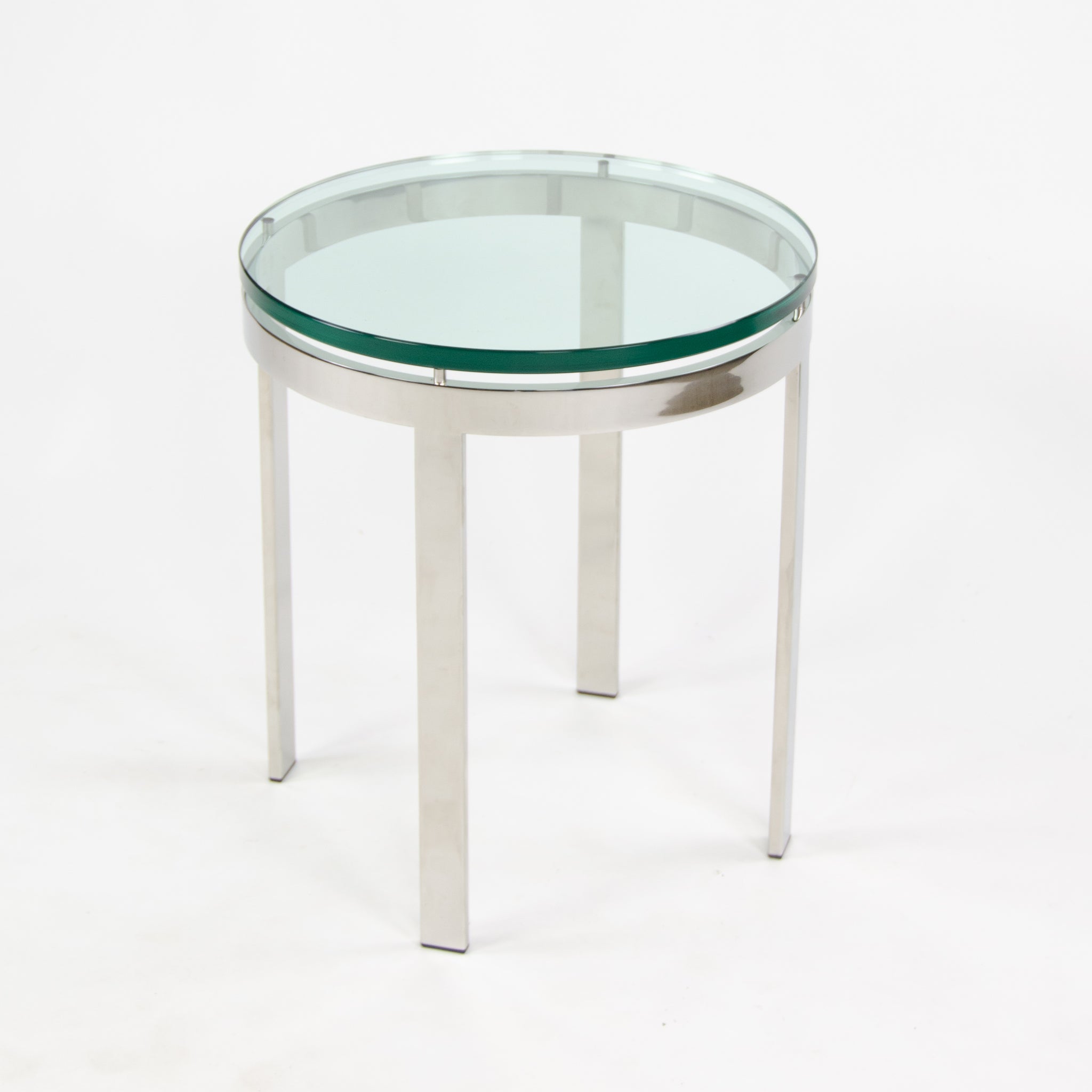 This is a Venlo side table by Cumberland. The side table is in fabulous condition with very little wear. The polished stainless steel structure gleams brilliantly. The listed price is for one table.