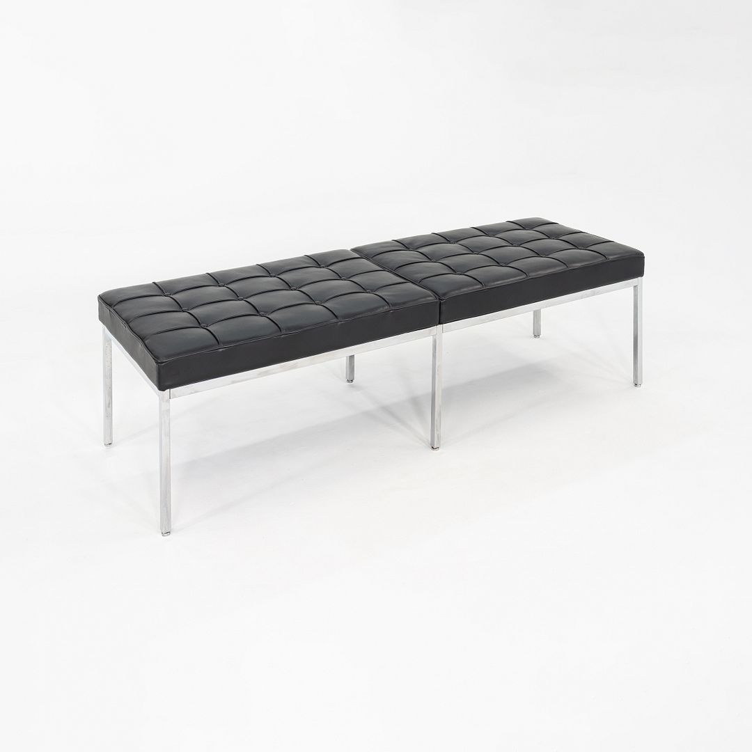 SOLD 2010s Florence Knoll Three Seat Bench in Black Leather with Chromed Steel Frame
