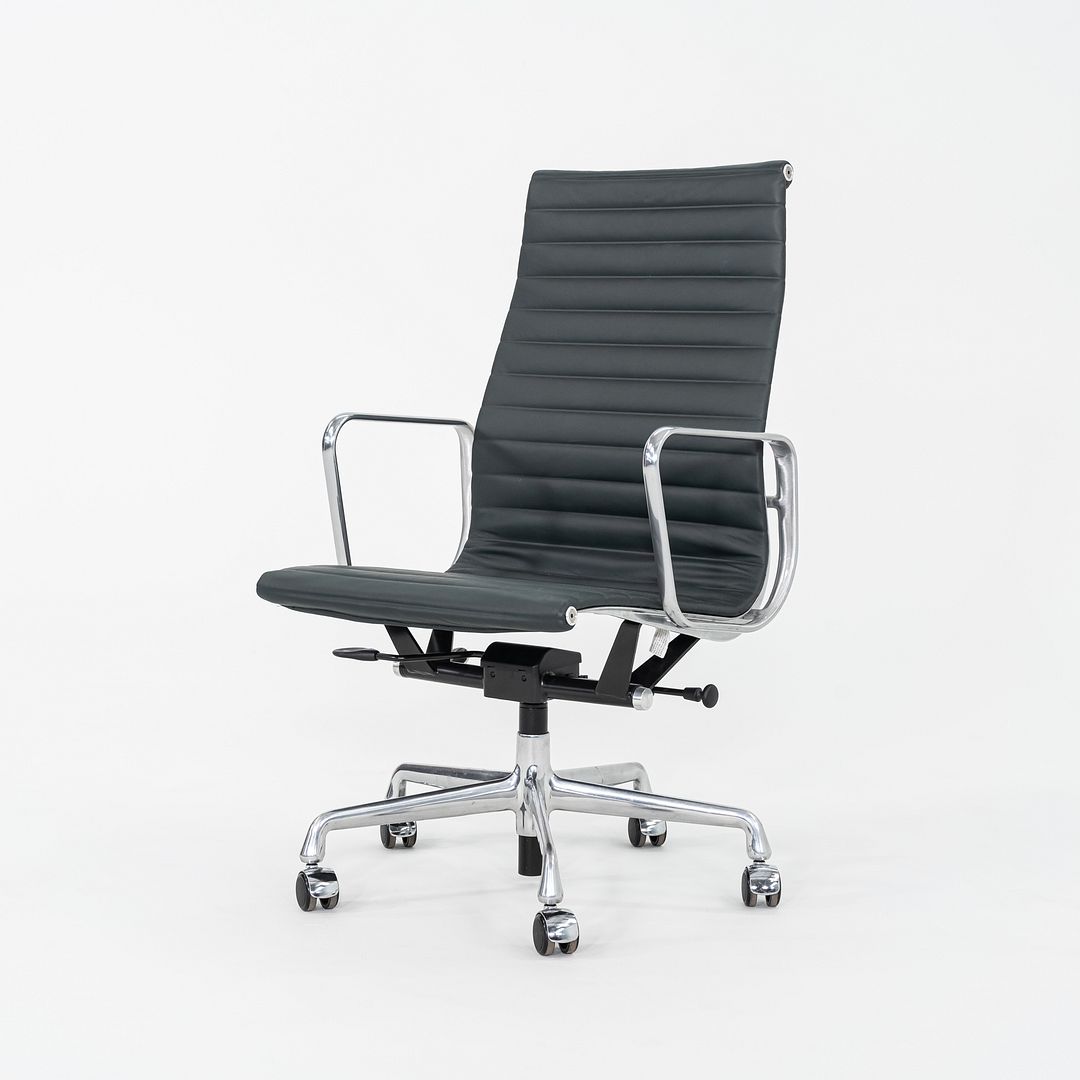 SOLD 2010s Herman Miller Eames Aluminum Group Executive Desk Chair Dark Green Leather