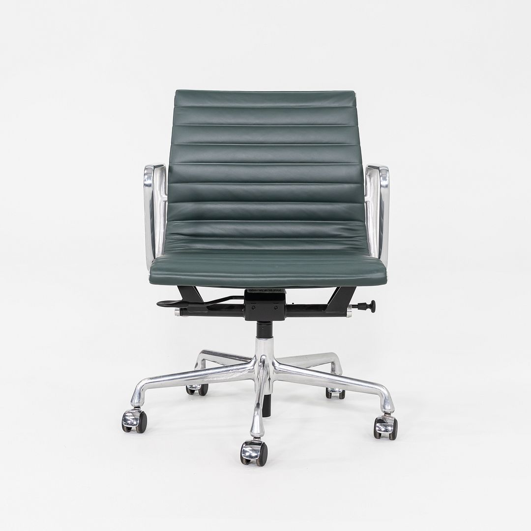 SOLD 2020s Herman Miller Eames Aluminum Group Management Desk Chair in Green Leather