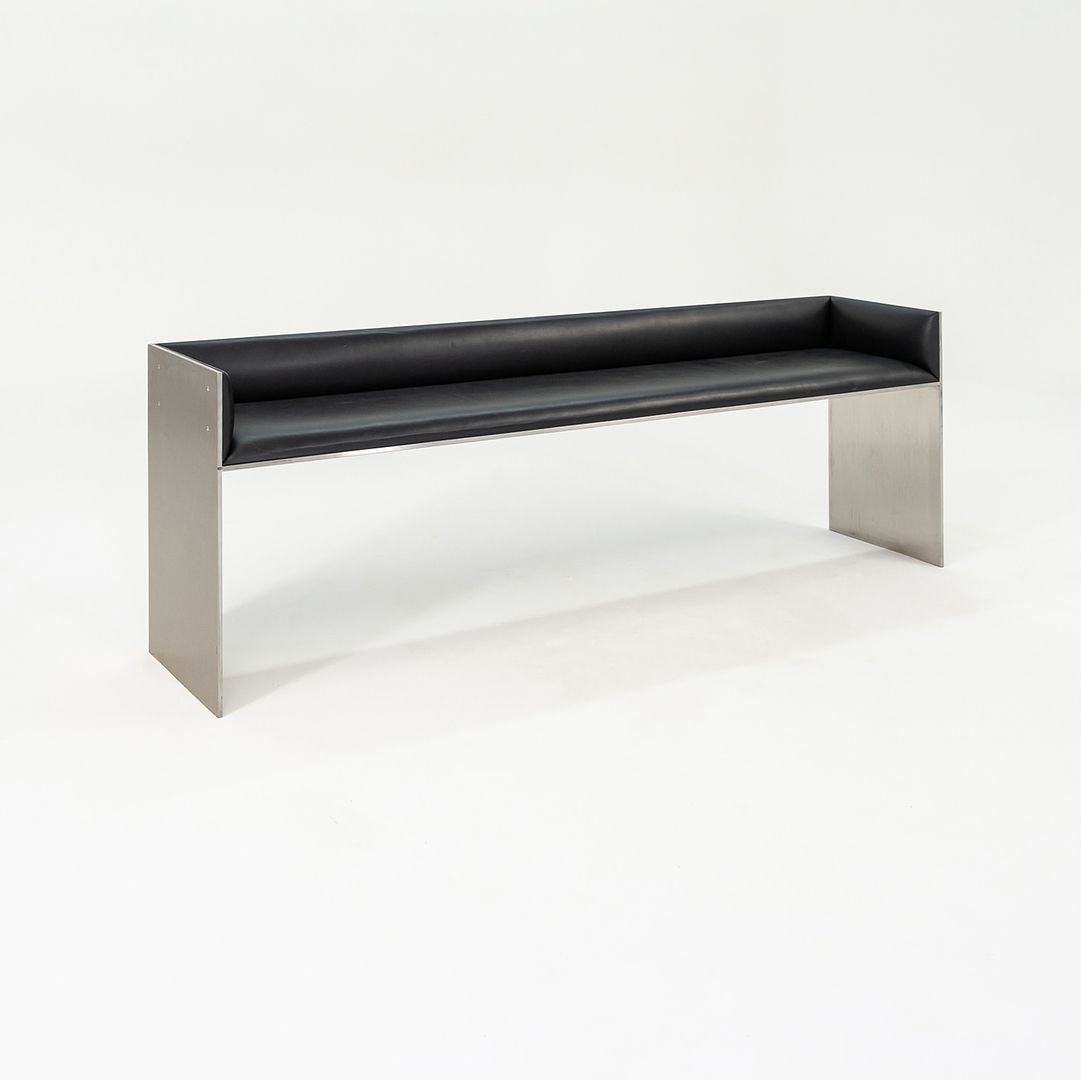 2016 Custom Brushed Stainless Steel Bench with Black Leather Upholstery, 2x Available