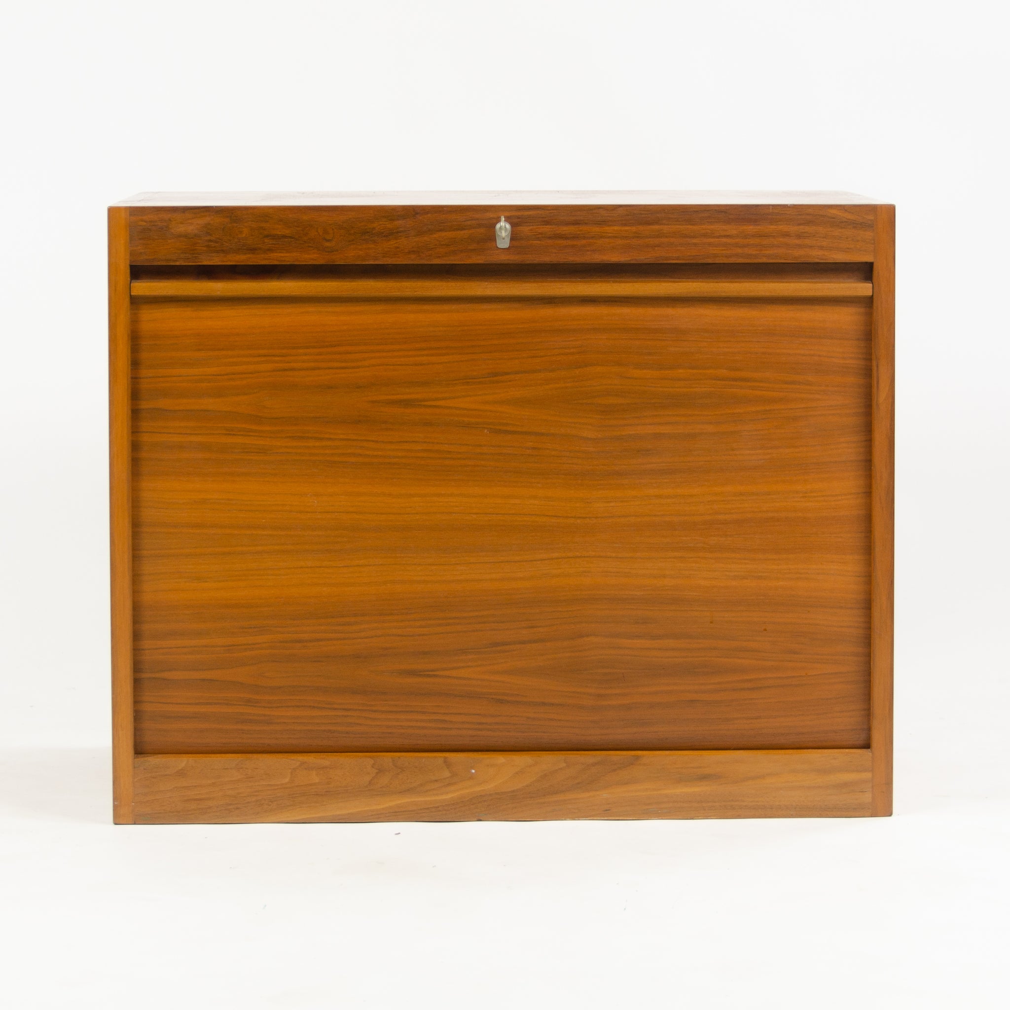 Listed for sale is a rare vintage Hans Wegner for Johannes Hansen of Denmark walnut tambour storage unit/cabinet. This rare cabinet was part of a larger storage system, which allowed for the creation of fabulous modules for storage.
