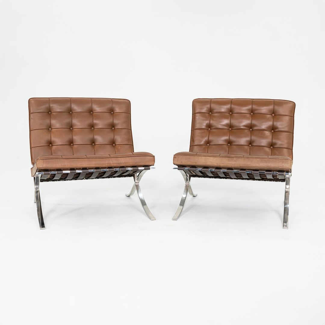 1990 Knoll Barcelona Lounge Chairs by Mies van der Rohe in Brown Leather and Stainless Model 250LS 2x Available