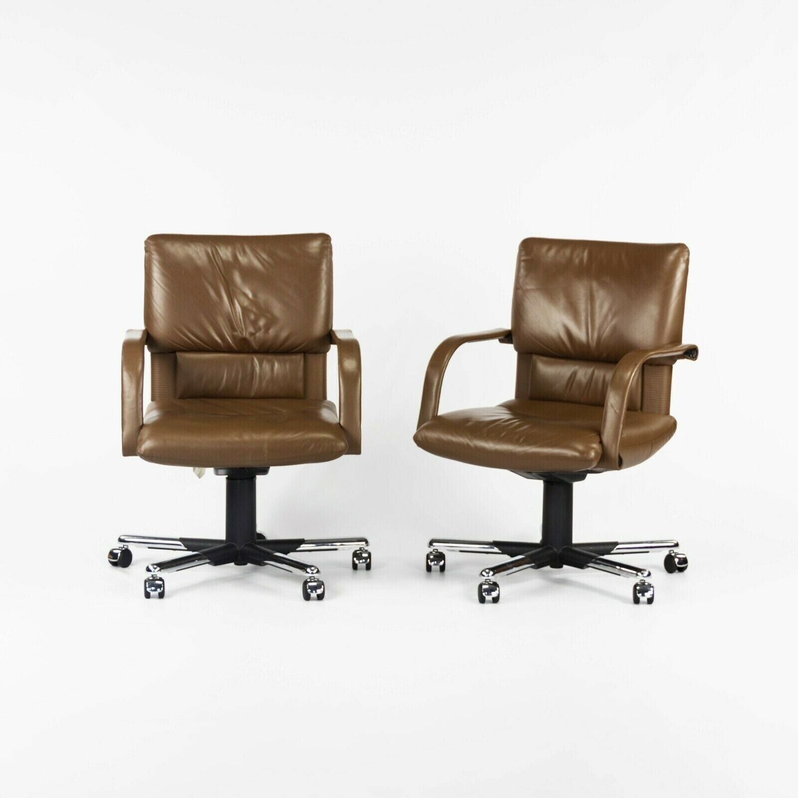 Listed for sale is a single (multiple chairs are available, but the price is for each chair) 1990s vintage Figura desk chair by Vitra, designed by Mario Bellini. These are gorgeous original examples, which retain their original brown leather upholstery.