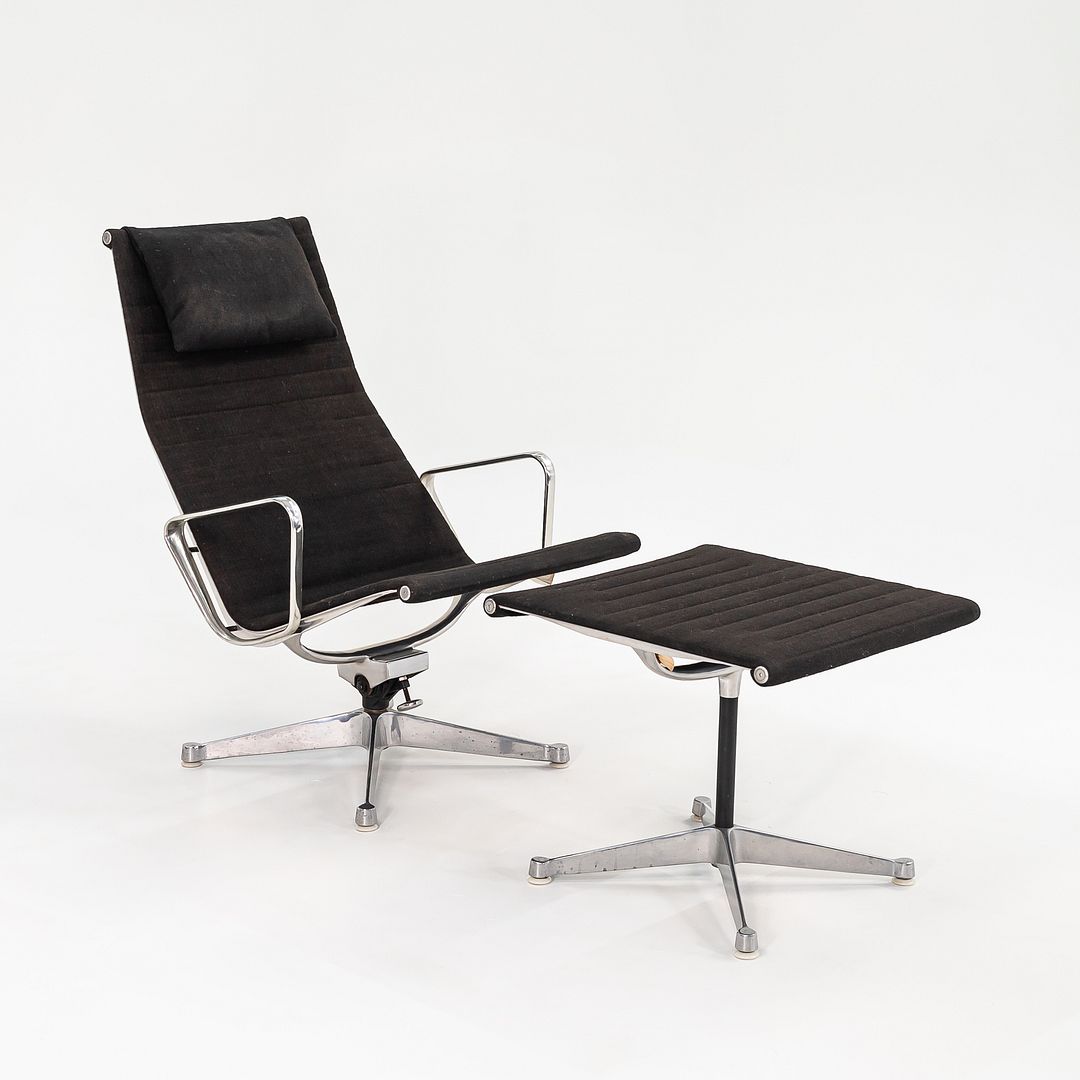 1960s Aluminum Group Lounge Chair and Ottoman, EA125 and EA124 by Charles and Ray Eames for Herman Miller in Black Fabric