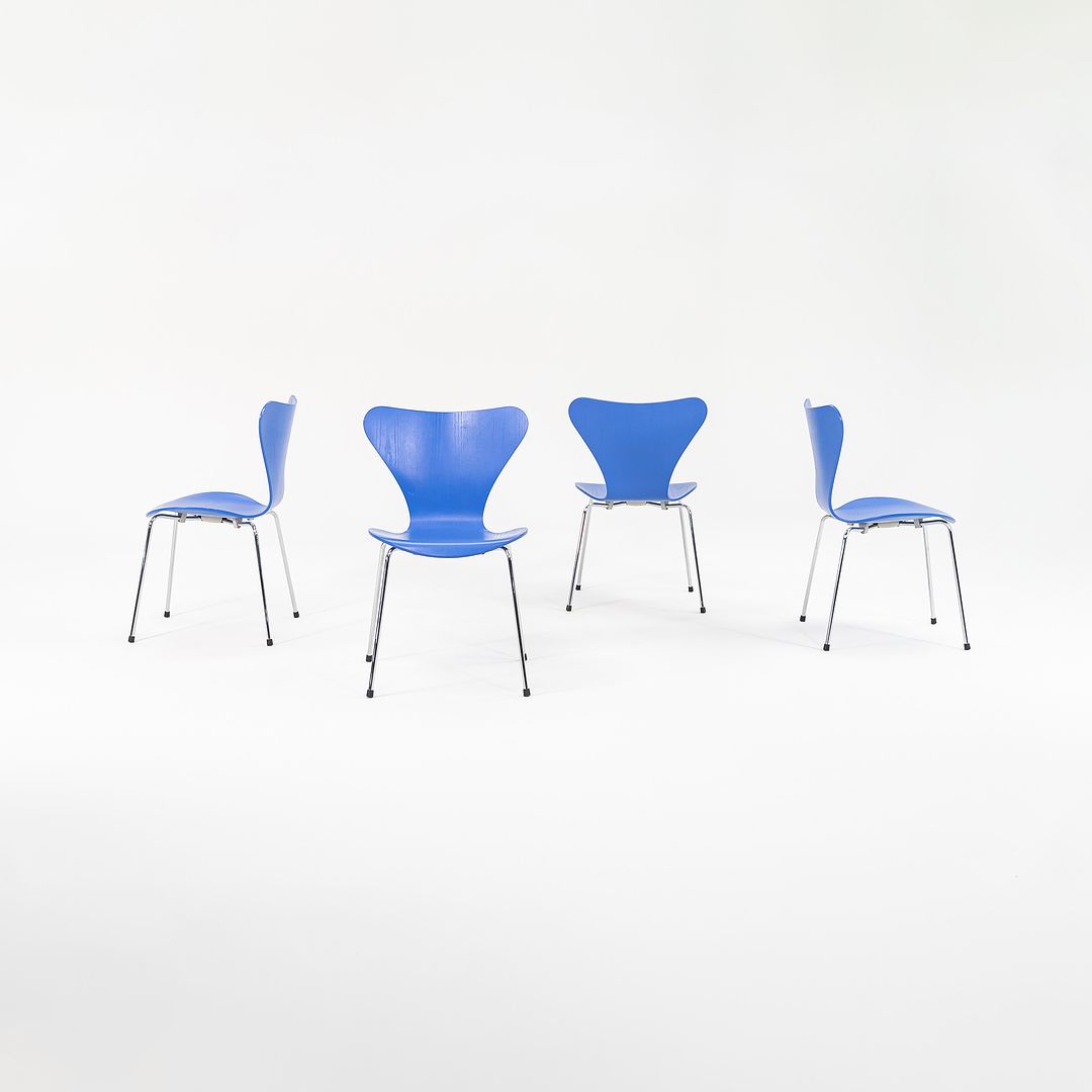 1996 Series 7 Dining Chair, Model 3107 by Arne Jacobsen for Fritz Hansen in Blue Painted Beech Wood Sets Available