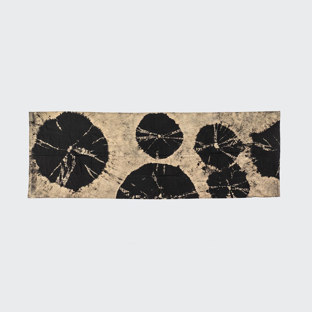 This is a rare piece of Shibori Printed Fabric by Alvin Lustig for Laverne Originals. The piece dates to the 1950s. It was produced by Laverne Originals in 1948 as both wallpaper and fabric. Laverne Originals was a modern design company founded by Estelle and Erwine Laverne in 1938. From its modest origins producing primarily wallpapers and textiles, Laverne (eventually Laverne International) added furniture and accessories, becoming one of the most accomplished and acclaimed design firms of the 1950s and 1960s