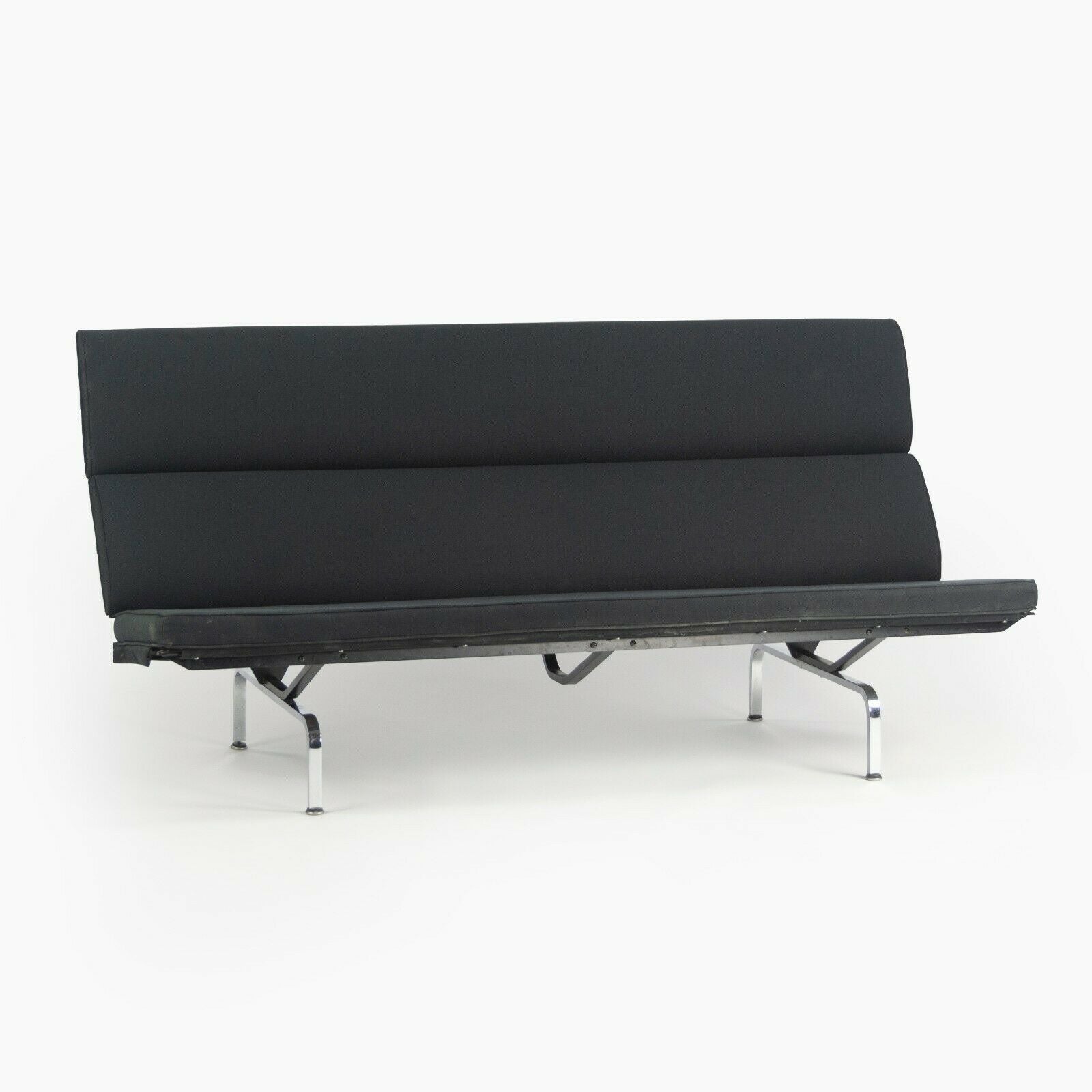 Listed for sale is an original Herman Miller Eames Sofa Compact designed by Ray and Charles Eames. The sofa compact was designed to be as efficient as possible when shipping and was therefore designed to fold almost flat. This example is in excellent condition with some light wear from use to the fabric and only minimal wear and use to the frame. See photos for reference.