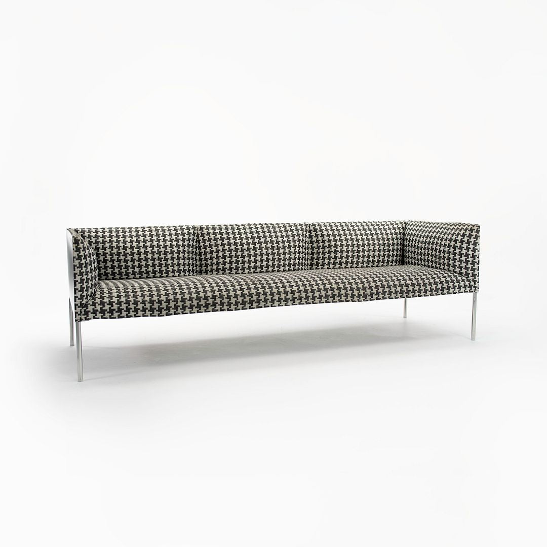 This is a ‘Hollow’ Case Sofa, designed by Patricia Urquiola for B & B Italia in 2006. This particular piece was manufactured in Italy in 2016. The design features upholstered interior panels done in a black and white houndstooth fabric, while the outer surface sports concave panels in glossy black. The seat case sits atop 4 polished steel legs.