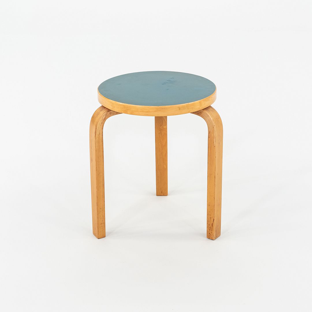 This is a Stool 60, originally designed by Aino and Alvar in 1933. This particular example was produced by Artek in Finland circa the 1950s. The stool is crafted from solid birch with Aalto’s signature bent L-legs. Its design allows it to be stacked with other Stool 60s.