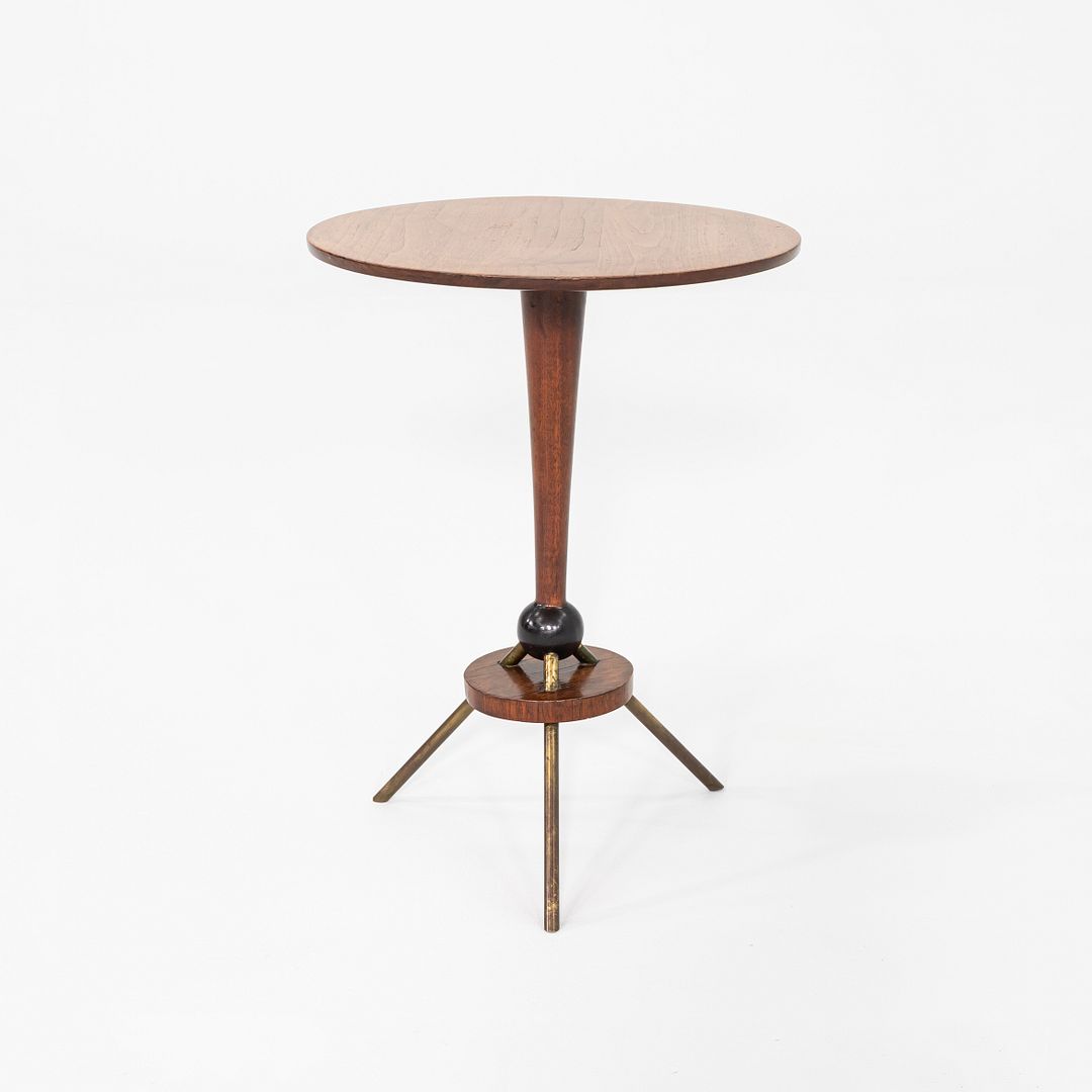 1950s Sputnik Tripod Side or End Table Crafted in Walnut with Brass Accents