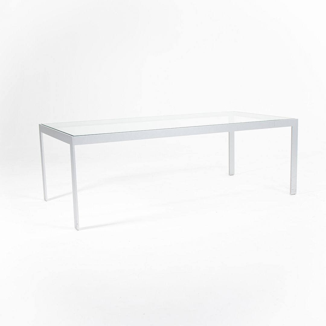 This is a Coffee Table, produced in the 2010s by an unknown designer and manufacturer. The table features a matte steel frame with clean, rectilinear lines, supporting a clear glass top. Minimalist in form and construction, the piece reflects a modernist sensibility with an emphasis on material clarity and function.