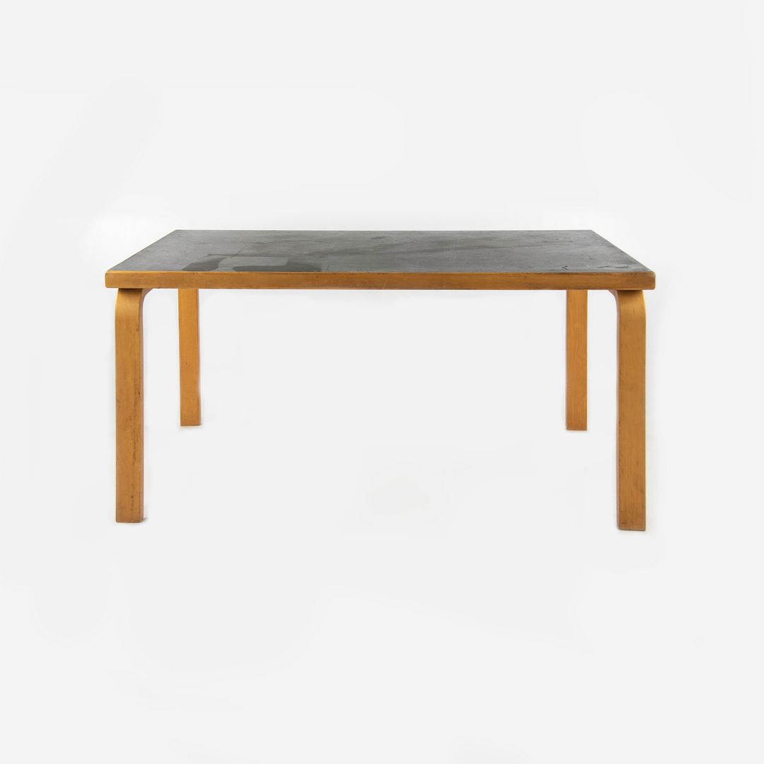 This is a child’s table (or can be used as a coffee table), model 81B, designed by Aino and Alvar Aalto for Artek in 1933. It was manufactured in Finland circa 1950s. The piece is constructed of steam-bent Birch wood, and its table top is black linoleum. This play table was initially designed for children, and has been utilized in kindergarten classes for generations in Finland. The size of this piece also renders it appropriate for use as a taller coffee table as well. This design is part of the L-leg collection of Alvar Aalto.