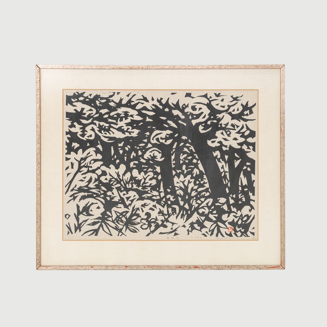 1961 Japanese Monochromatic Mokuhanga Woodblock Framed Print by Kihei Sasajima