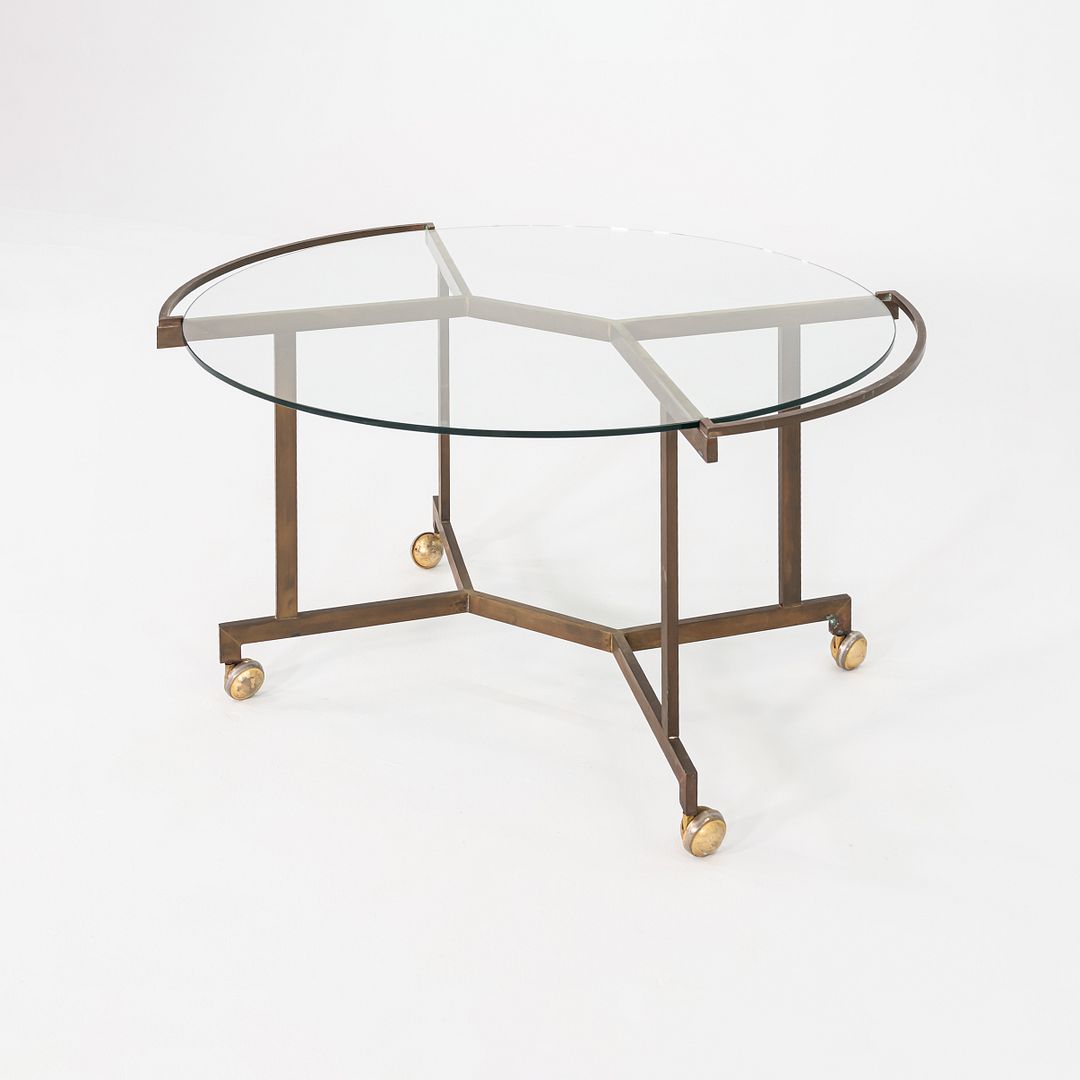 1970s Harvey Probber Attributed Bronze and Glass Rolling Dining or Serving Table